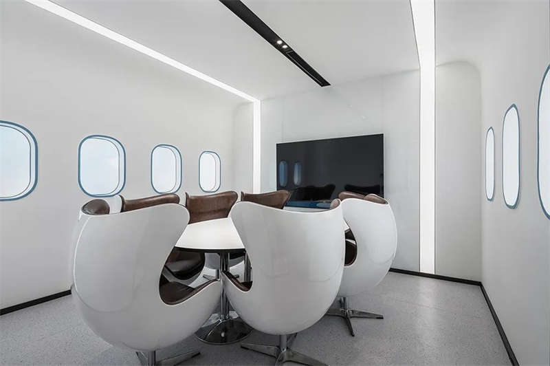 前廳頂部,鏡面質(zhì)感與光帶反射,使空間得到延伸、重疊呼應(yīng),營造出多維的視覺效果,同時打破科技辦公室設(shè)計的刻板印象,擁有寬敞開放的前臺設(shè)計、待客區(qū),層次、質(zhì)感、豐滿而厚重。