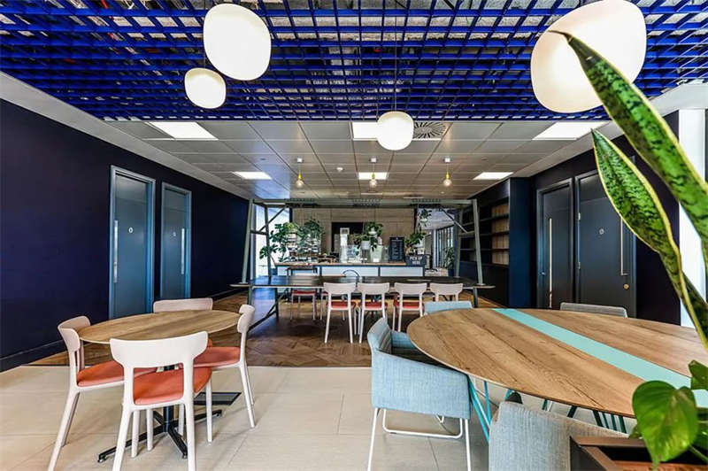 設(shè)計(jì)師的任務(wù)是通過翻新改造,去創(chuàng)建一個(gè)支持混合辦公模式的工作場(chǎng)所:因?yàn)樵诤笠咔闀r(shí)代,公司成員每周在辦公室工作2-3天,其余時(shí)間居家工作(WFH)或遠(yuǎn)程工作。在客戶提交的簡(jiǎn)報(bào)中強(qiáng)調(diào)了人力資源這一重要述求:新的環(huán)境將有助于留住現(xiàn)有員工,讓他們感覺無論居家還是在辦公室都能自在享受工作的樂趣,同時(shí)還能吸引潛在的優(yōu)秀人才。