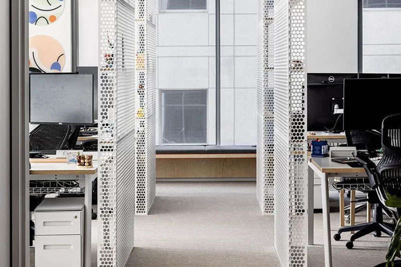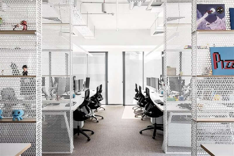 就如同吹出來的肥皂泡泡自由飄散于空中的原理一樣,設(shè)計團隊將工作區(qū)和各類休閑設(shè)施、會議空間、協(xié)作空間和專注空間等自由穿插布局,從而形成一個流暢、動感、無縫連接、且充滿趣味的混合形態(tài)工作布局。