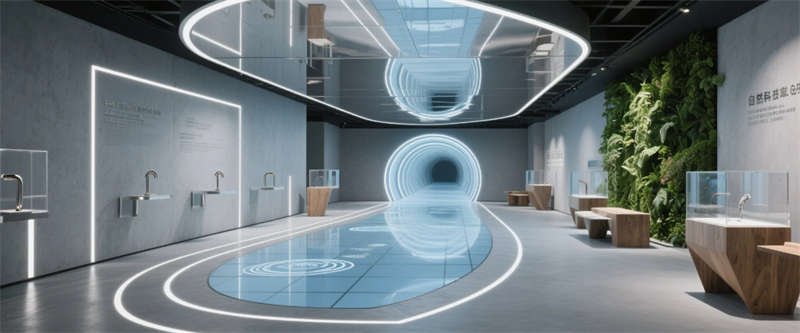 各區(qū)域通過四大統(tǒng)一性語(yǔ)言緊密串聯(lián):霧霾藍(lán)橢圓金屬門把手貫穿全空間,再生材料家具呼應(yīng)可持續(xù)發(fā)展理念,聲學(xué)墻面嵌入本地植物標(biāo)本強(qiáng)化生態(tài)屬性,智能燈光系統(tǒng)則通過4000K色溫線性燈帶實(shí)現(xiàn)晝夜場(chǎng)景的無(wú)縫切換。特別設(shè)計(jì)的全息投影展廳與智能階梯會(huì)議室,通過LED交互地屏與AR懸浮展臺(tái),將品牌科技基因融入空間體驗(yàn)。