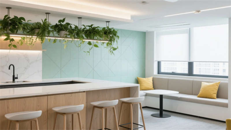 設(shè)計強(qiáng)調(diào)人文關(guān)懷,休閑區(qū)暖調(diào)燈光與柔軟卡座形成情緒緩沖帶,茶水間吧臺成為非正式社交樞紐。材質(zhì)選擇凸顯可持續(xù)理念,微水泥、再生木材與綠植系統(tǒng)貫穿始終,呼應(yīng)簡約背后的生態(tài)意識。整體空間在合肥這座創(chuàng)新之城,詮釋了高效辦公與人文溫度共生的當(dāng)代范式。