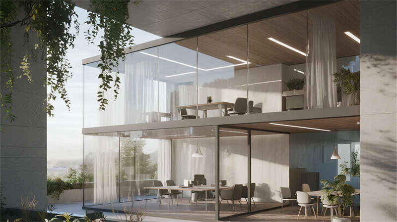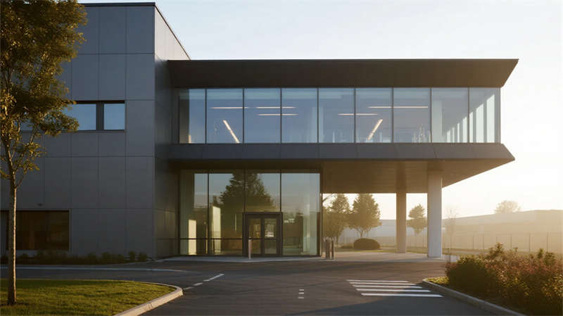 本設(shè)計(jì)以現(xiàn)代簡(jiǎn)約語言重構(gòu)廠房美學(xué)。設(shè)計(jì)摒棄冗余裝飾,聚焦材料本質(zhì)——銀灰金屬立面與通透玻璃幕墻形成虛實(shí)對(duì)比,利落線條切割出幾何體塊,在光影流動(dòng)中彰顯力量感。廠區(qū)布局強(qiáng)調(diào)功能與自然的共生:屋頂光伏板陣列呼應(yīng)綠色生產(chǎn)理念,嵌入式空中花園與竹林連廊為鋼鐵空間注入呼吸感,員工休憩區(qū)模糊了工業(yè)與生活的邊界。