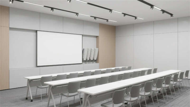高管辦公空間彰顯差異化設(shè)計:經(jīng)理辦公室以木格柵墻面與模塊沙發(fā)營造親和力,總裁辦公室則通過深胡桃木隱形門、弧形沙發(fā)與城市景觀落地窗凸顯沉穩(wěn)氣度。多功能廳采用可伸縮隔斷與嵌入式LED屏,適應(yīng)培訓(xùn)、會議等多場景需求;茶水間以中島吧臺與幾何層板打造輕松社交空間,筒燈聚焦的綠植墻增添生機(jī)。