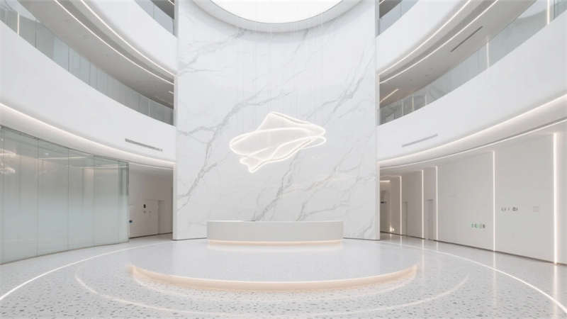 這不僅是容納工作的容器,更是滋養(yǎng)創(chuàng)新的生態(tài)系統(tǒng)。光庭底部的交互裝置實時可視化園區(qū)能源消耗,員工通過手機(jī)調(diào)整個人碳足跡;研發(fā)走廊的觸摸墻可一鍵預(yù)約實驗室設(shè)備,物理空間與數(shù)字系統(tǒng)形成雙生鏡像。當(dāng)晨曦穿過中庭天窗,在懸浮樓梯投下幾何光斑,建筑本身已成為科技精神的朝圣地——這里沒有傳統(tǒng)辦公樓的機(jī)械重復(fù),只有持續(xù)進(jìn)化的空間智能體,在合肥的創(chuàng)新大地上生長為聯(lián)結(jié)過去與未來的永恒坐標(biāo)。