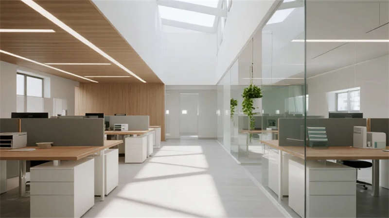 內(nèi)部空間聚焦人性化體驗:開放式辦公區(qū)借由落地窗引入充沛自然光,搭配原木元素軟化工作氛圍;會議室以通透玻璃隔斷實現(xiàn)靈活協(xié)作;休閑咖啡區(qū)則通過暖調(diào)燈光與弧形家具構(gòu)建松弛社交場景。屋頂花園將城市景觀轉(zhuǎn)化為員工休憩靈感源,模糊室內(nèi)外界限。