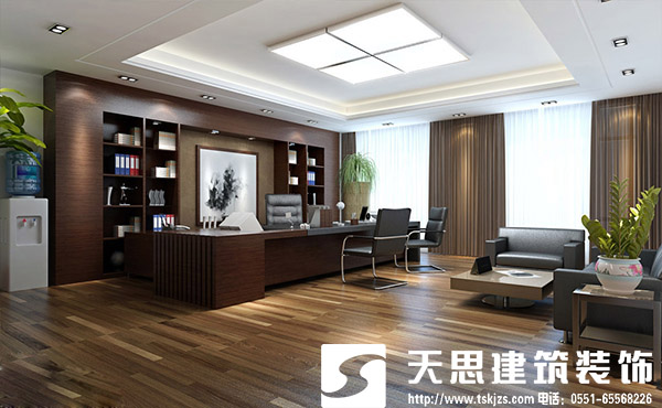 合肥天思裝飾認(rèn)為,總經(jīng)理辦公室設(shè)計(jì)裝修的首要條件就是對(duì)空間的要求;辦公空間要足夠?qū)挸?,并且保證有一定的私密性。作為總經(jīng)理的辦公室,在裝修設(shè)計(jì)師不僅要考慮到整個(gè)空間的面積,還要利用辦公家具來營造一種擴(kuò)大視覺空間的效果。總經(jīng)理的身份階層表明了其工作的重要性,所以一個(gè)優(yōu)質(zhì)的辦公環(huán)境室十分重要的。