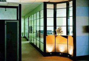 彩色玻璃隔斷是以彩藝玻璃作一種隔斷主體,主要是利用玻璃色彩變幻,營造出非凡藝術(shù)效果的辦公室隔斷,選用彩色玻璃隔斷時,最重要的是色調(diào)要與辦公室的整體裝飾設計風格保持一致。