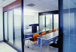 但當彩色玻璃的單片玻璃面積過大時,就會存在很大的安全的隱患,所以,天思建筑裝飾設計的彩色玻璃隔斷方法是:在不影響整體辦公室裝飾效果的同時,盡量的把玻璃割裂成小塊,也可以適當增加框架比例,這樣就能降低彩色玻璃遭受碰撞的幾率,也就大大的降低了安全隱患。