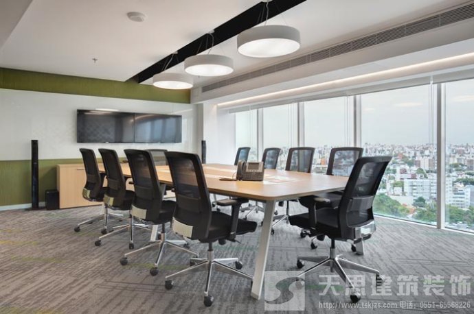會(huì)議室的設(shè)計(jì):設(shè)計(jì)師在設(shè)計(jì)的時(shí)候,將其安置在靠近窗戶的空間區(qū)域中,在設(shè)計(jì)師看來會(huì)議是企業(yè)發(fā)展所不可替的,但是設(shè)計(jì)師希望可以改變會(huì)議室給人枯燥、無味的感覺,故此設(shè)計(jì)師將采光、室外景色通過設(shè)計(jì)的手法將其引入室內(nèi),讓會(huì)議變得有趣起來。
