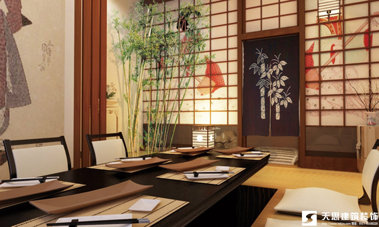 日式料理店現(xiàn)在逐漸地流行起來,人們喜歡它們的原因不僅是美食的誘惑,還有賦予日本國家裝修文化喜愛。日式裝修的色彩主要是自然色,強(qiáng)調(diào)簡潔的效果,增加自然和諧,讓身在其中的人們感到放松和舒適。日式裝修材料非常講究,選擇天然木制材料是每個(gè)日式裝修的特點(diǎn),在實(shí)際運(yùn)用中,還能夠?qū)⒄麄€(gè)簡潔大方的特點(diǎn)體現(xiàn)出來。