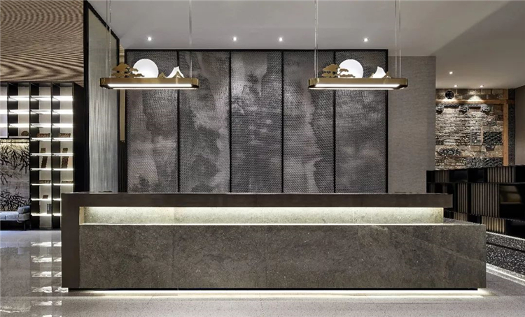 酒店在不同層次的設(shè)計(jì)上靈活運(yùn)用了徽州文化的核心特點(diǎn)來(lái)汲取神韻氣質(zhì),結(jié)合空間的整體系列性,將文化元素滲透到每一個(gè)細(xì)節(jié)中,將經(jīng)典重現(xiàn).營(yíng)造極具東方美學(xué)觀(guān)感的藝術(shù)空間.設(shè)計(jì)團(tuán)隊(duì)通過(guò)對(duì)傳統(tǒng)與現(xiàn)代結(jié)合,含蓄與精致并存,兩種不同意境相映成輝,從文化底蘊(yùn)、材料、軟裝色彩......去推敲空間的序列,實(shí)現(xiàn)了酒店的魅力.既體現(xiàn)出人們對(duì)當(dāng)代藝術(shù)與文化的追求,又勾勒出東方意境的沉穩(wěn)靜謐.