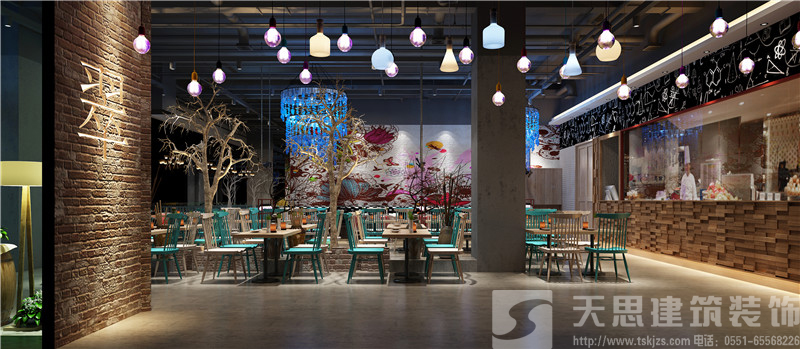 現(xiàn)代餐廳風格迎合了青少年們的品味,燈飾非常漂亮