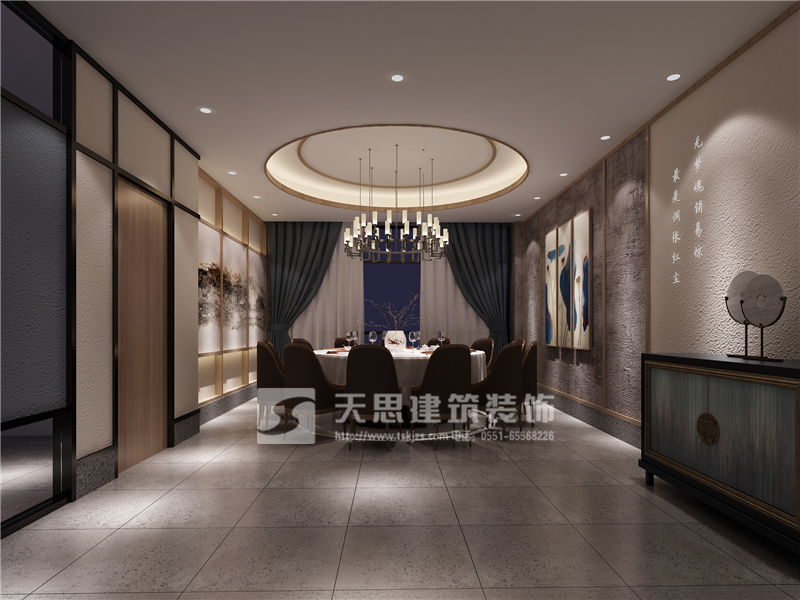 圓柱吊燈、墻壁刻字、墻壁上的國畫、餐具的擺放,一切的一切相互融合起來,形成一個優(yōu)質(zhì)的就餐環(huán)境,在這里讓客戶感受到不一樣的就餐氛圍。