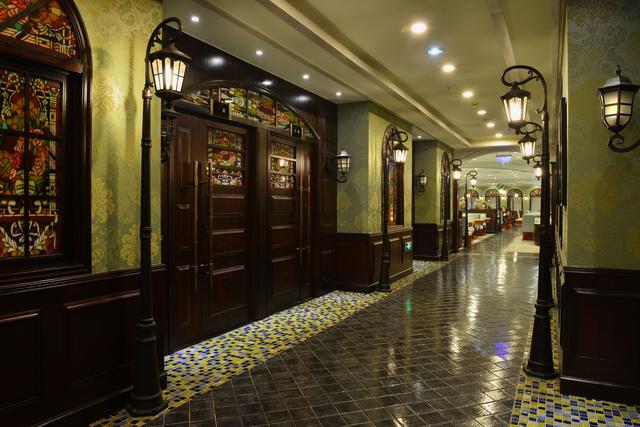 設(shè)計(jì)說明:整個(gè)餐廳以民國(guó)時(shí)期的重慶來打造,以民國(guó)建筑和民俗風(fēng)情為藍(lán)本,以民國(guó)時(shí)期六對(duì)著名的戀人作主題,就連服務(wù)員的服裝也特別制作為民國(guó)學(xué)生裝及軍統(tǒng)軍裝。紙醉金迷,恍若隔世。