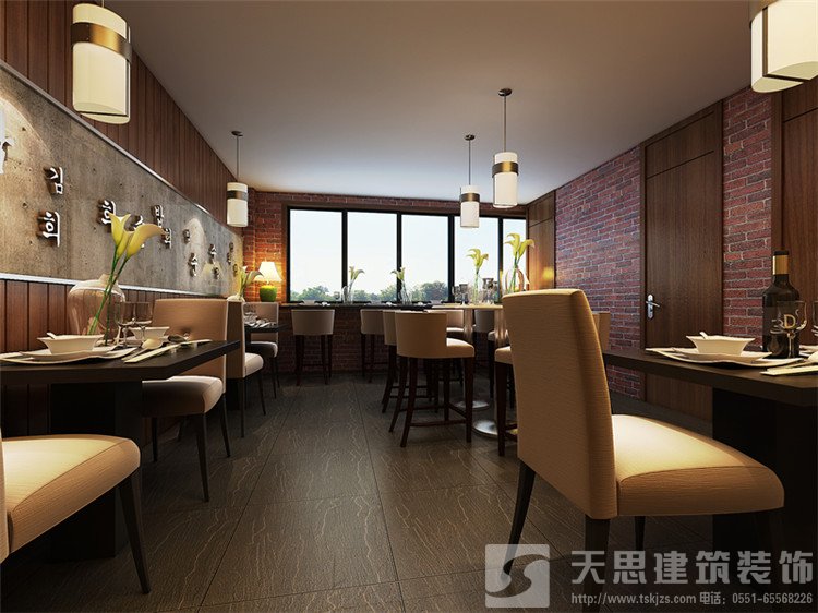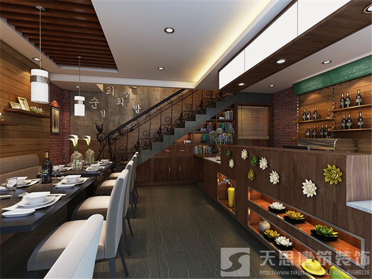 韓國紫菜包飯屬于一家連鎖店,在合肥目前有接近10家分店,在裝修風(fēng)格上結(jié)合了地域文化特點,韓國人的居住空間比較狹小,對空間的利用非常緊湊。席地而坐的生活習(xí)慣讓他們呈現(xiàn)出一種低姿態(tài)的,貼近自然的生活形態(tài),居室的設(shè)計所呈現(xiàn)出來的是小家碧玉式的精致,沒有奢華和張揚??臻g裝飾多采用簡潔、硬朗的直線條 ,反映出現(xiàn)代人追求簡單生活的居住要求,迎合了韓式家居追求內(nèi)斂、質(zhì)樸的設(shè)計風(fēng)格。