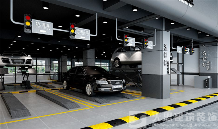 設(shè)計(jì)公司:安徽天思建筑裝飾 設(shè)計(jì)項(xiàng)目:919汽服汽車美容保養(yǎng)店設(shè)計(jì) 設(shè)計(jì)師:梅工 設(shè)計(jì)面積:460平方 項(xiàng)目地址:肥東 頂面環(huán)形效果 外立面效果 維修車間效果 無塵車間效果 洗車間效果