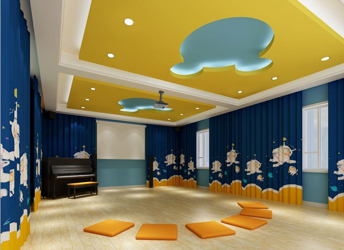 音樂教室的設計:對于每一個人來說,音樂都是美好的,對于孩子來說更是如此,當老師彈起鋼琴的時候,孩子們在后面翩翩起舞,無疑可以激發(fā)孩子們對于音樂的興趣,這里的一切都志在激發(fā)孩子的興趣,然后在興趣的指引下,達到教學的目的。