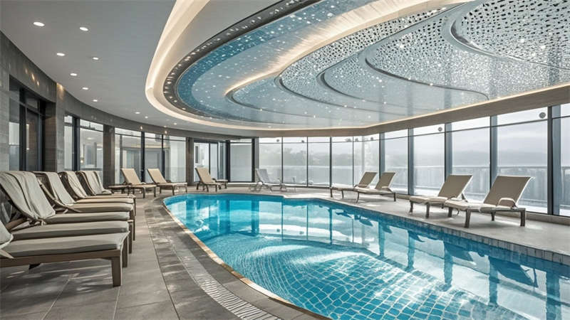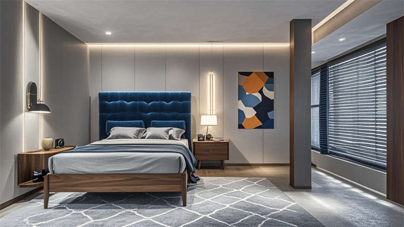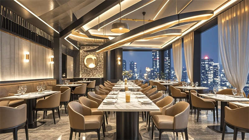 本2000平現(xiàn)代簡約風(fēng)格酒店設(shè)計(jì)以'城市綠洲'為核心理念,通過流線型空間布局構(gòu)建高效動(dòng)線。大堂采用懸浮式水晶燈與淺灰大理石地面形成視覺焦點(diǎn),金屬與木質(zhì)的冷暖對(duì)比提升空間質(zhì)感。客房區(qū)運(yùn)用深藍(lán)與淺灰的撞色搭配,配合智能照明系統(tǒng)實(shí)現(xiàn)多場(chǎng)景模式切換。公共區(qū)域大量運(yùn)用無框玻璃隔斷,保持空間通透性的同時(shí)實(shí)現(xiàn)功能分區(qū)。色彩體系以米白為基底,點(diǎn)綴深胡桃木與香檳金,局部運(yùn)用幾何紋樣增強(qiáng)設(shè)計(jì)感。材料選擇注重環(huán)保與耐用性,石材、金屬與吸音材質(zhì)的組合兼顧美觀與實(shí)用。燈光設(shè)計(jì)采用多層次照明系統(tǒng),筒燈、燈帶與裝飾照明相結(jié)合,營造舒適光環(huán)境。各功能區(qū)域通過統(tǒng)一的材質(zhì)語言和色彩邏輯保持整體協(xié)調(diào),同時(shí)根據(jù)不同使用需求進(jìn)行個(gè)性化設(shè)計(jì),如會(huì)議室配備移動(dòng)隔斷實(shí)現(xiàn)靈活分隔,健身中心采用防滑橡膠地板等專業(yè)處理