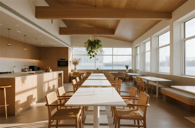 該設(shè)計以“城市綠洲”為核心理念,打造兼具功能與美學(xué)的經(jīng)濟(jì)型住宿空間。建筑外觀采用干凈利落的幾何切割,淺灰與玻璃材質(zhì)碰撞出輕盈現(xiàn)代感,入口綠植墻軟化都市冷硬氛圍。內(nèi)部空間貫徹簡約哲學(xué):模塊化家具系統(tǒng)最大化利用面積,榻榻米客房集成儲物與休憩功能,隱藏式燈光營造舒緩氛圍。公共區(qū)域強調(diào)共享與自然連接,早餐區(qū)落地窗引入晨光,綠植點綴的休息區(qū)提供社交場景。材質(zhì)選擇克制而統(tǒng)一,淺木色、微水泥與亞麻織物構(gòu)成低飽和度基調(diào),局部點綴抽象線條藝術(shù),呼應(yīng)合肥現(xiàn)代都市氣質(zhì)。設(shè)計聚焦高效運營與人文關(guān)懷,通過智能分區(qū)和環(huán)保細(xì)節(jié),為旅客提供回歸本質(zhì)的寧靜棲居體驗。
