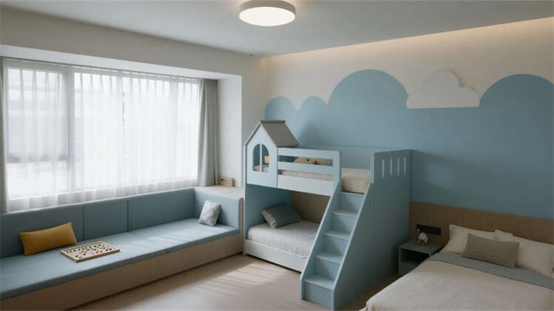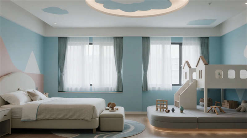 公共區(qū)域強(qiáng)調(diào)功能與美學(xué)的平衡:開(kāi)放式游樂(lè)區(qū)釋放孩子天性,閱讀角的樹(shù)洞書(shū)架激發(fā)想象力,手工坊的彩虹收納系統(tǒng)培養(yǎng)創(chuàng)造力。戶外庭院融入沙坑與綠植,讓自然成為游戲場(chǎng);夜晚的星空影音室則轉(zhuǎn)為家庭溫馨劇場(chǎng)。整體設(shè)計(jì)通過(guò)流動(dòng)的空間布局,讓家長(zhǎng)與孩子在簡(jiǎn)約美學(xué)中共享親密時(shí)光,重新定義合肥親子度假的體驗(yàn)方式。