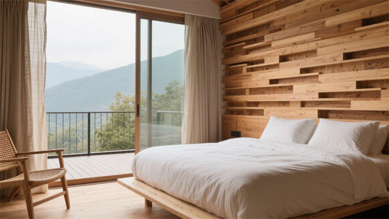 私密客房延續(xù)整體風(fēng)格,床具與家具均選用簡(jiǎn)約線條的原木款式,搭配淺灰色床品與局部的自然織物,營(yíng)造出松弛的休憩環(huán)境。細(xì)節(jié)處,墻面裝飾以天然石材切片與手工陶藝,地面鋪設(shè)防滑耐磨的原木紋地板,既保證實(shí)用功能,又強(qiáng)化了自然質(zhì)感。整個(gè)設(shè)計(jì)沒(méi)有多余的繁復(fù)裝飾,而是通過(guò)材質(zhì)的碰撞、光影的變化與色彩的協(xié)調(diào),讓每一處空間都傳遞出 “歸于本真” 的居住理念,為入住者提供遠(yuǎn)離喧囂、親近自然的休憩體驗(yàn)。