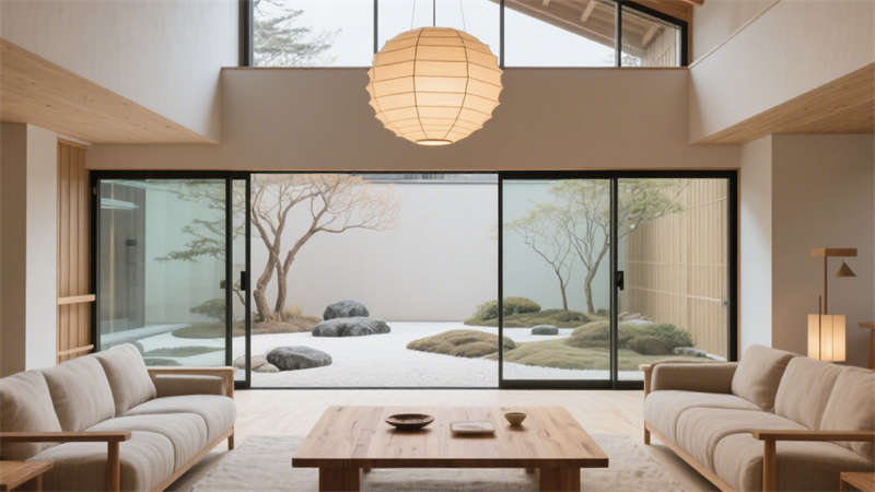 本設(shè)計(jì)以自然與現(xiàn)代的融合為核心,延續(xù)了原木、玻璃與清水混凝土的材質(zhì)語(yǔ)言,將合肥地域的溫潤(rùn)氣質(zhì)與侘寂美學(xué)相呼應(yīng),打造出兼具舒適感與藝術(shù)感的居住場(chǎng)景。公共區(qū)域中,淺橡木色的柜體與天花線條連貫延伸,搭配通透的玻璃隔斷,讓光線自由穿梭,模糊室內(nèi)外的邊界;清水混凝土墻面保留了原始肌理,與苔蘚綠的軟裝陳設(shè)形成柔和對(duì)比,傳遞出質(zhì)樸而寧?kù)o的氛圍。?