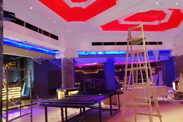 大廳是消費者進入內部的第一印象,是演藝吧最為重要的裝飾空間,占具著重要角色。無論大門面向哪個方位,大廳的設計要符合風水的要求。大廳可以選用在容易清洗的材質面板裝飾,地面與墻壁的配搭建議采用連續(xù)性的圖案與花色,這樣擴大了大廳空間的立體感。大廳的設計要有吸引住消費者的眼球,讓消費者能體驗到舒適的感覺。