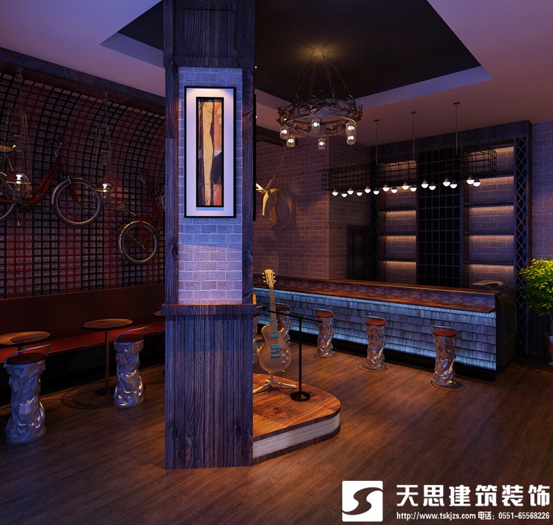 設(shè)計公司: 安徽天思建筑裝飾設(shè)計工程有限公司 項目面積:180平方 個性的風(fēng)格是酒吧設(shè)計的靈魂,就像人類的思想。酒吧文化從某中意義上來講是整個城市中產(chǎn)階級的文化聚集場所,