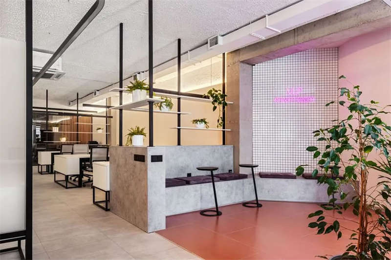 一種是沿辦公室周邊設(shè)置了一圈燈帶,燈光從白色天花板上反射出來,散發(fā)出令人賞心悅目的溫暖漫射光。還有一種線性照明形式呼應(yīng)流線型的建筑輪廓,將整個辦公室從入口區(qū)域連接到行政工作區(qū)。另一個這樣的設(shè)計元素出現(xiàn)在廚房區(qū),當陰天自然光不足時可以照亮這里的空間。此外,每組工位都有一個獨立光源,如有必要,每個員工都可以自行打開或關(guān)閉。