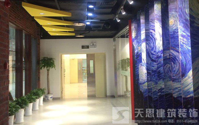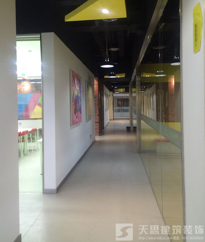 以下圖片,節(jié)選自待完工的工地現(xiàn)場(chǎng),分別是入口、大廳、過道、教室、活動(dòng)中心等功能區(qū)域。整體選擇LOFT混搭風(fēng)格,裸露的天花板+墻面,搭配現(xiàn)代元素,既節(jié)省了裝修成本,也營(yíng)造了“藝術(shù)人生”的環(huán)境。