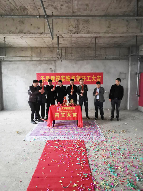開工現(xiàn)場(chǎng),客戶與天思裝飾工程部負(fù)責(zé)人,項(xiàng)目經(jīng)理都來(lái)到了現(xiàn)場(chǎng)