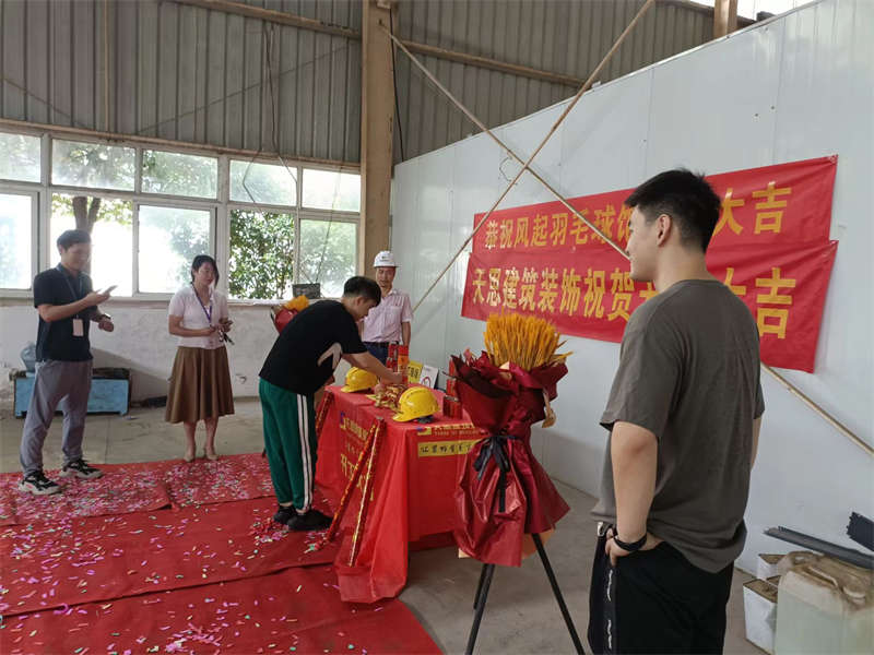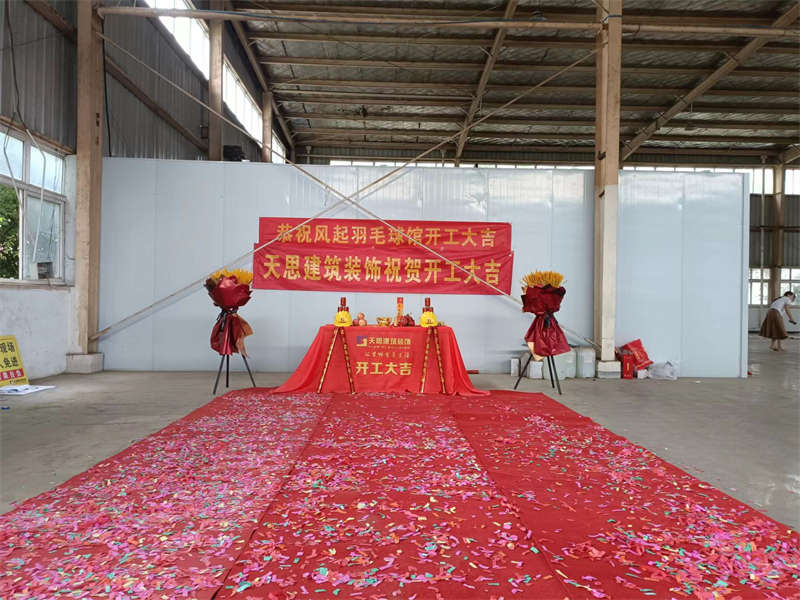 2022年7月18日,陽光高照,在這個晴朗的日子里,風起羽毛球館裝修工程正式開工啦,讓我們在這里一起道一聲:“開工大吉!”。感謝業(yè)主對我們天思裝飾的信任,我們必不會辜負客戶的信任!