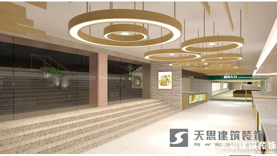 超市入口設(shè)計一定要便于顧客出入,不致造成阻塞、擁擠,又能有效地利用商店面積。出入口設(shè)計原則是超市門面裝修設(shè)計原則的首要點(diǎn)(重點(diǎn))。