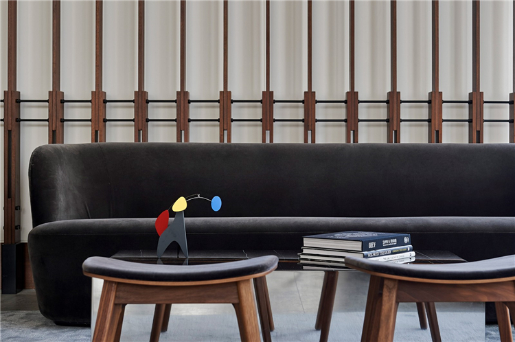餐廳位于大堂旁邊,由木條幕墻隔開,而不是墻壁,目的是鼓勵人們在兩個空間之間自由移動。“當你走進大堂時,你會注意到餐廳空間和大堂區(qū)域之間的無縫,我們希望人們全天都能有效地利用這個空間,這樣你就不會覺得自己被封閉在一個特定的區(qū)域里。”