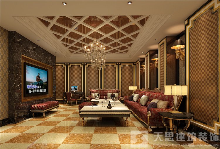 大廳是給消費(fèi)者的第一印象,是KTV裝修設(shè)計(jì)的關(guān)鍵。KTV大廳設(shè)計(jì)中最重要的要素就是一定要寬敞明亮,無(wú)論你的門(mén)面朝哪個(gè)方位,大廳的設(shè)計(jì)都要符合風(fēng)水的要求。大廳設(shè)計(jì)在材質(zhì)上要選用容易清潔的飾面材料,地面與墻面建議采用連續(xù)性的圖案和花色,這樣可以加強(qiáng)大廳的空間立體感。大廳的設(shè)計(jì)要有親和力,讓消費(fèi)者一進(jìn)門(mén)就能感覺(jué)到舒適。