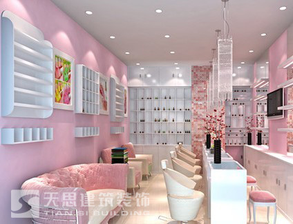 美甲店的店面裝飾設(shè)計(jì)相當(dāng)?shù)闹匾碇@家店的整體形象,也是給顧客的第一印象。所以整個(gè)門面設(shè)計(jì)顏色要根據(jù)年輕女孩的個(gè)性以及女性顧客心理而定。不能過太過艷俗,更不能用一些濃重暖味的色彩,最好用的玻璃門窗,讓顧客能一眼看到里面的狀態(tài)。