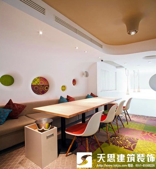 餐廳裝修效果圖,我們也隨之回到了現(xiàn)代,彩色地板與彩色桌椅相互呼應(yīng),個(gè)性鮮艷,讓整個(gè)餐飲空間充滿(mǎn)著活躍之感,被更為細(xì)致的刻畫(huà)并且賦予時(shí)尚的裝修設(shè)計(jì)造型與鮮艷的顏色。薄薄的桌面纖細(xì)在桌腳,現(xiàn)代工藝使木頭也有不小的改變。