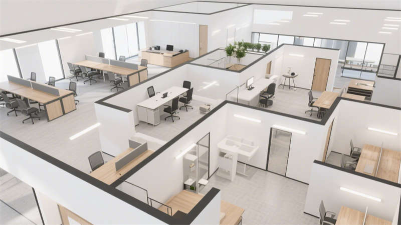 細(xì)節(jié)處理上,墻面采用簡(jiǎn)潔的裝飾手法,避免過多繁復(fù)造型,地面材質(zhì)選擇耐磨且易清潔的種類,既符合辦公空間的實(shí)用需求,也保持了整體風(fēng)格的統(tǒng)一性。整體設(shè)計(jì)沒有多余的裝飾堆砌,而是通過對(duì)空間、色彩、材質(zhì)的精準(zhǔn)把控,打造出一個(gè)兼具美學(xué)感與實(shí)用性的辦公環(huán)境,讓辦公空間既簡(jiǎn)潔大氣,又能滿足日常辦公的各項(xiàng)功能需求。