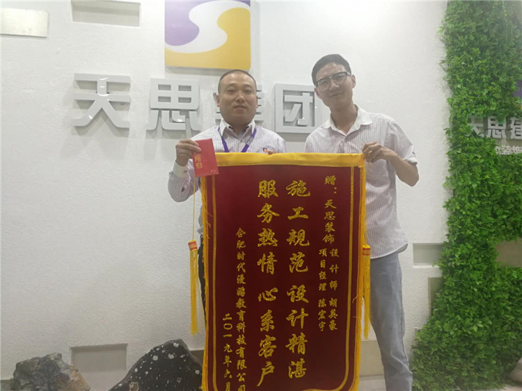 業(yè)主在百忙之中特意來天思裝飾贈送錦旗,對施工項目經(jīng)理陳工的施工質量和服務贊不絕口.業(yè)主道:他懷著萬分感激之情,向陳工、胡工及天思裝飾全體員工表示真誠的感謝和良好的祝愿