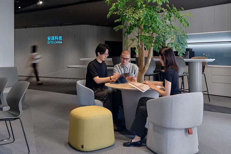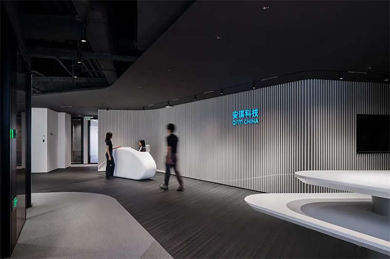 設(shè)計(jì)過(guò)程中也不乏挑戰(zhàn):如何在空間設(shè)計(jì)中顯示出Arm China 特有DNA以及未來(lái)辦公的前瞻性?一工團(tuán)隊(duì)為此做了充分調(diào)研,成為智能計(jì)算生態(tài)的領(lǐng)航者,這是Arm的一個(gè)企業(yè)愿景,我們同時(shí)理解了Arm最新的VI轉(zhuǎn)型設(shè)計(jì)。設(shè)計(jì)師把此次項(xiàng)目當(dāng)作一顆未來(lái)的種子,以點(diǎn)破面,將Arm的員工當(dāng)作未來(lái)的種子和探索者。在空間中用動(dòng)線、機(jī)理和光和設(shè)計(jì)手法引導(dǎo)來(lái)訪者在新的辦公空間朝向往的方向生長(zhǎng)。