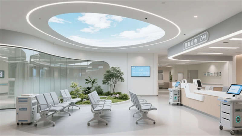 智慧系統(tǒng)隱形滲透每個角落:候診區(qū)的生態(tài)墻內(nèi)嵌電子叫號屏,醫(yī)療街導(dǎo)航立柱實(shí)時更新就診信息,病房床頭屏集成環(huán)境控制與醫(yī)療呼叫功能。特別設(shè)計的抗菌材質(zhì)與無縫工藝,在營造溫暖氛圍的同時嚴(yán)守院感防線。
