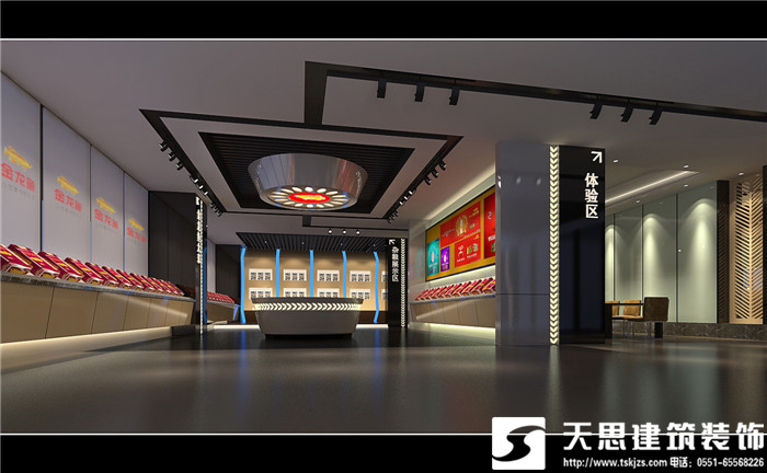展廳是提高產(chǎn)品和企業(yè)品牌形象的場(chǎng)所,表達(dá)個(gè)性風(fēng)格是這個(gè)空間的關(guān)鍵。金龍魚通過(guò)利用地面折線分割跑道的表現(xiàn)與背景形象的鮮明顏色相互配合產(chǎn)生強(qiáng)烈視覺(jué)沖擊效果,令人耳目一新,印象深刻。在其中部設(shè)計(jì)中,運(yùn)用厚重的體量感,如半圓形及魚形,將所有的空間有機(jī)地聯(lián)系起來(lái),長(zhǎng)久、富貴、不可侵犯。