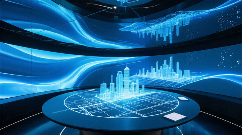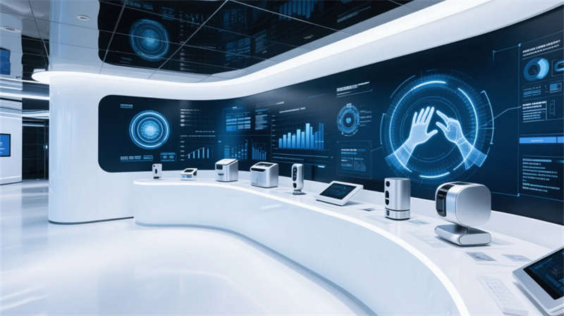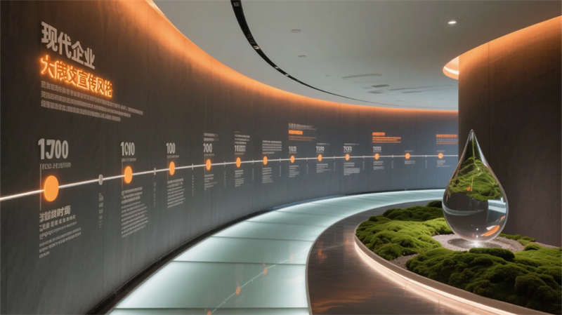 全廳采用模塊化智慧系統(tǒng),互動(dòng)桌面、全息投影與流體藝術(shù)墻實(shí)時(shí)響應(yīng)參觀(guān)行為,在展示功能性與人文關(guān)懷間建立精妙平衡。最終的未來(lái)暢想?yún)^(qū)以鏡像空間延展視覺(jué)維度,在粒子光舞中激發(fā)創(chuàng)新對(duì)話(huà)——這里不僅是企業(yè)實(shí)力的窗口,更是合肥創(chuàng)新精神的沉浸式體驗(yàn)場(chǎng)域。