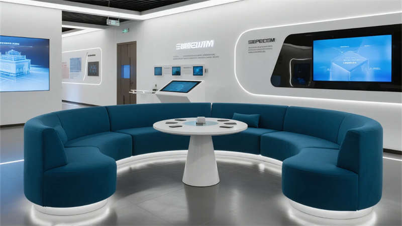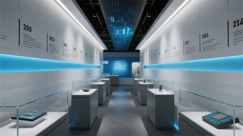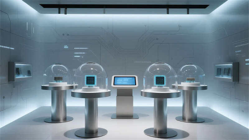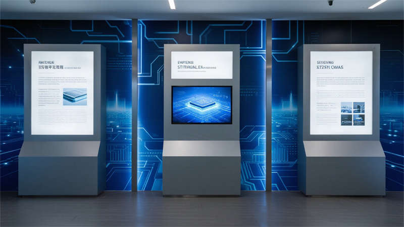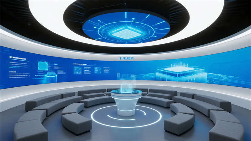 該半導(dǎo)體企業(yè)展廳以現(xiàn)代簡約風(fēng)格為核心,通過流暢空間布局與高科技元素,打造沉浸式科技體驗(yàn)。設(shè)計(jì)突出半導(dǎo)體技術(shù)的抽象表達(dá),利用藍(lán)色與灰色調(diào)營造冷靜、專業(yè)的氛圍,同時(shí)融入玻璃、金屬材質(zhì)增強(qiáng)通透感。入口區(qū)以懸浮雕塑引導(dǎo)視線,產(chǎn)品展示區(qū)通過簡約玻璃柜和觸屏互動(dòng),生動(dòng)呈現(xiàn)技術(shù)精髓;技術(shù)創(chuàng)新墻以動(dòng)態(tài)圖文展現(xiàn)工藝演進(jìn),歷史廊道則以線性敘事喚起行業(yè)記憶?;?dòng)區(qū)和未來展望區(qū)強(qiáng)調(diào)參與性,采用環(huán)形屏幕與全息投影,讓訪客直觀感受創(chuàng)新應(yīng)用。休息區(qū)與演講區(qū)注重人性化,簡約家具結(jié)合微光紋理,提供舒適交流空間。整體設(shè)計(jì)摒棄繁復(fù)裝飾,以干凈線條和光影變化強(qiáng)化空間流動(dòng)性,不僅傳遞半導(dǎo)體領(lǐng)域的精密與前瞻性,更通過美學(xué)融合提升教育性和觀賞性。展廳作為科技展示平臺(tái),旨在激發(fā)探索興趣,體現(xiàn)企業(yè)對創(chuàng)新文化的重視。